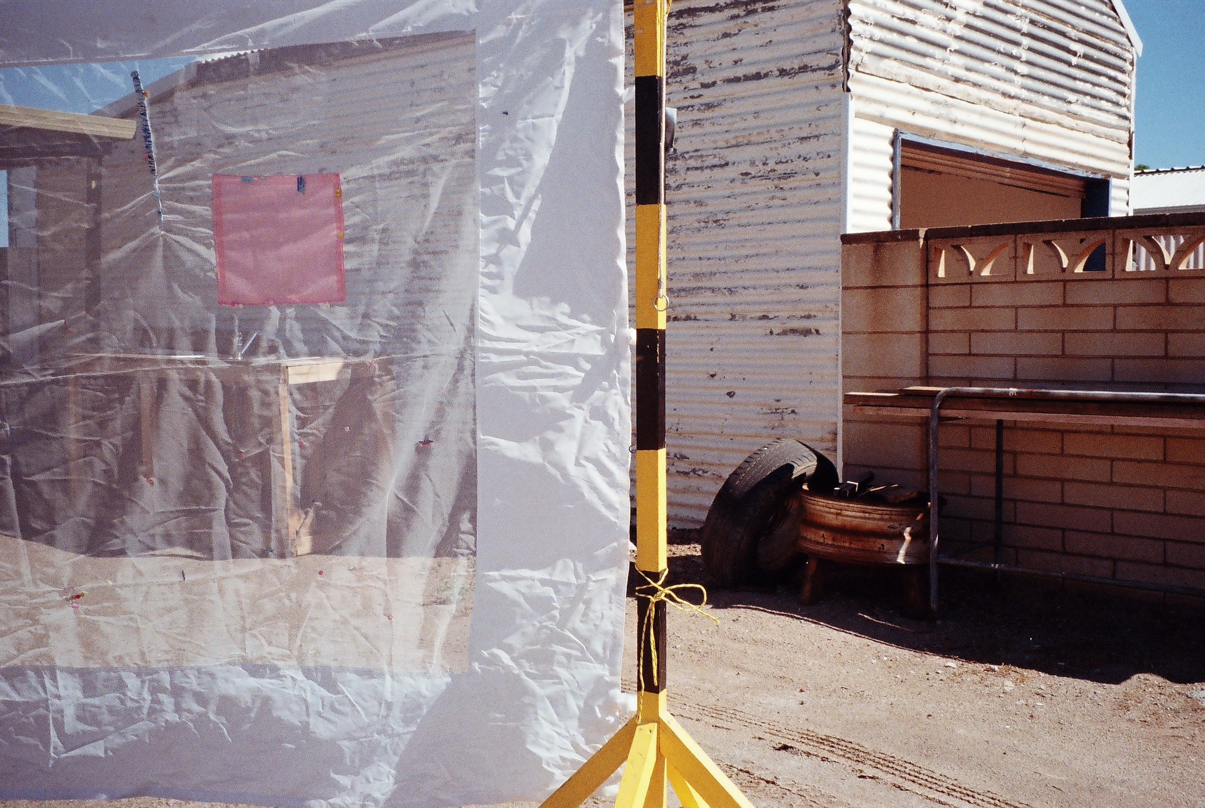 PERMANENT SMOKO unfolded through socially-engaged practice, spatial experimentation and resourcefulness, using second-hand and borrowed materials to resist extractive logics. It emerged through acts of borrowing, sharing, reworking and making-do which brought about a collaborative installation developed with the Slag Heap4 community. PERMANENT SMOKO treats shared activities, rest and relationship as the ongoing work, imagining a time when we all knock off5 forever. The artwork was shared in a series of public locations in Broken Hill and along the Sundown Trail. It’s now part of the Slag Heap Projects collection to be reimagined for future community gatherings and events.