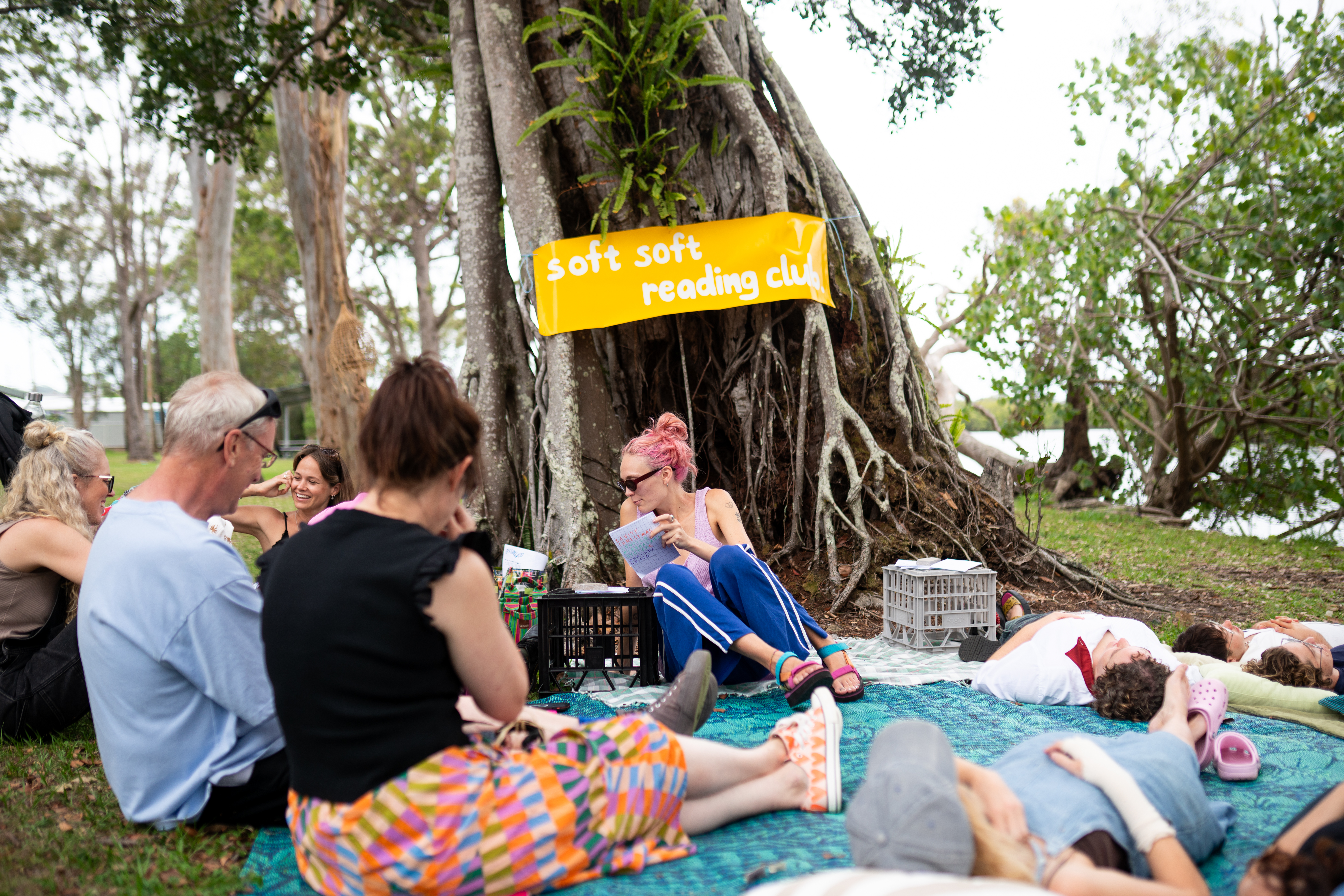 The final softwash drew audiences into the wet, liminal spaces of the Tweed River. Guided by queer ecological thinking, At the Water’s Edge encouraged participants to attune to multispecies relations and reflect on interdependence. Artists explored themes of sovereignty, non-dualism, language and care through performances, workshops and installations that invited visitors to listen differently and soften their edges.